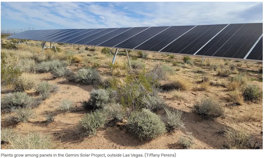 New research finds that the Gemini Solar Project in Nevada has become a haven for unique desert plant life! Scientists found 12 individual plants of the rare threecorner milkvetch species on the site before development, but 93 in 2024 after the solar panels were added. Furthermore, the milkvetch growing at the Gemini solar farm grew wider and taller than the milkvetch growing on nearby land plots outside the solar farm. This beneficial effect is likely thanks to the panels providing shade, thus reducing evaporation and retaining more vital moisture in the soil. It helps that the Gemini solar farm was built with “ecovoltaics” techniques, minimizing disturbance during construction.