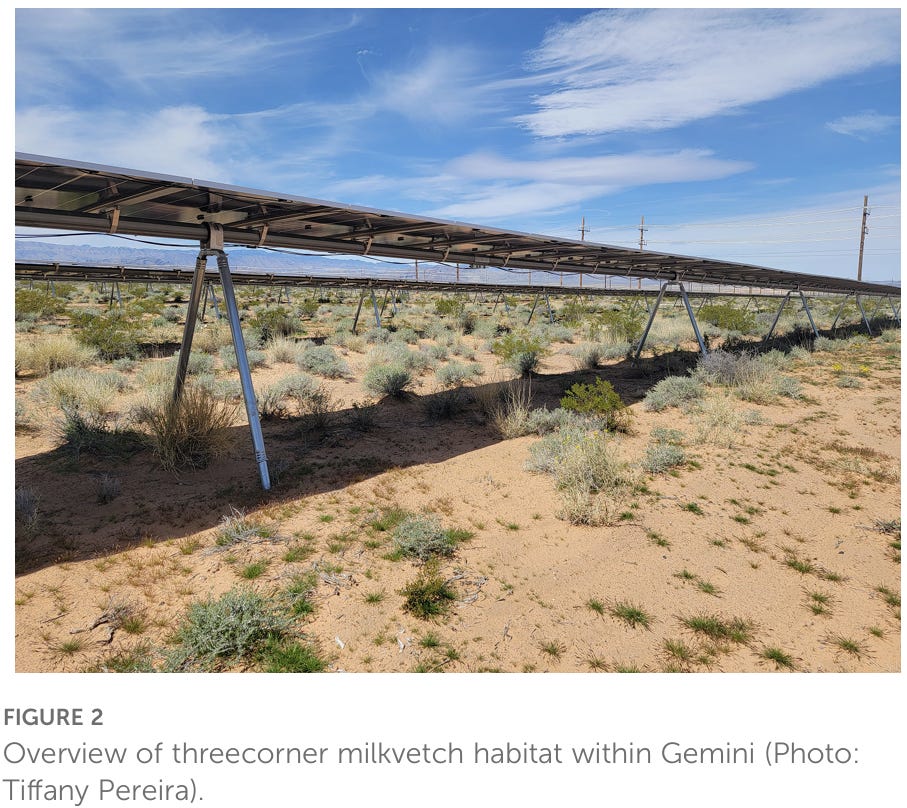 A recent study found that the rare threecorner milkvetch plant is thriving on the Gemini solar farm in Nevada.
